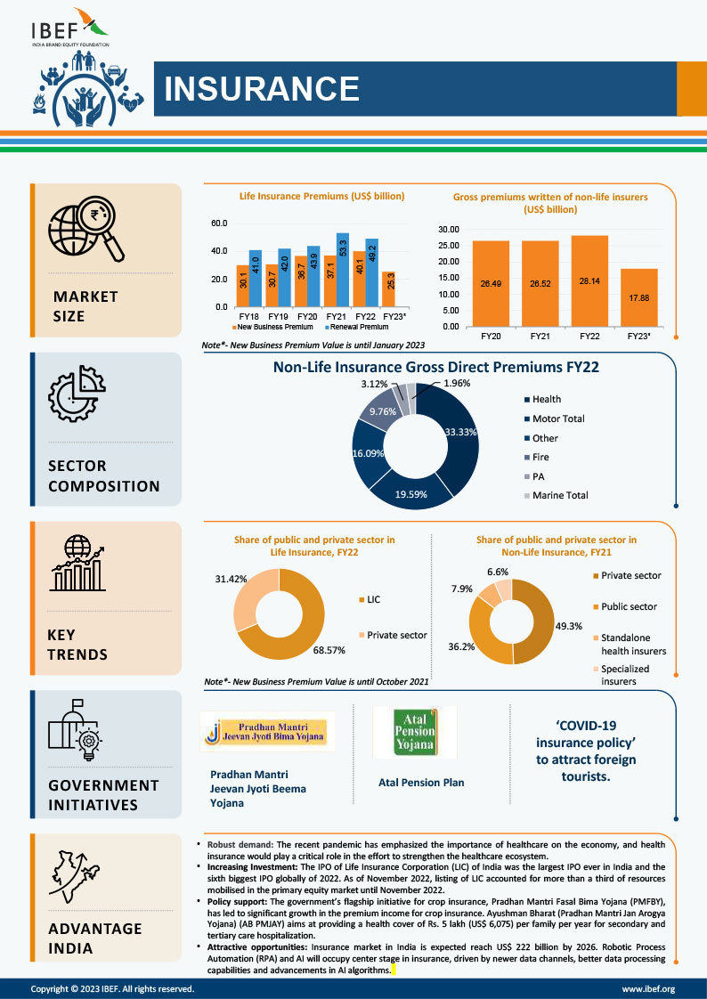 The insurance industry in India has witnessed significant growth and transformation in recent years. The industry is regulated by the Insurance Regulatory and Development Authority of India (IRDAI) and comprises both life and non-life insurance segments. Major players in the life insurance segment include LIC, HDFC Life, SBI Life, ICICI Prudential Life, and Max Life. Meanwhile, the non-life insurance segment has major players like New India Assurance, ICICI Lombard, Bajaj Allianz, and National Insurance.